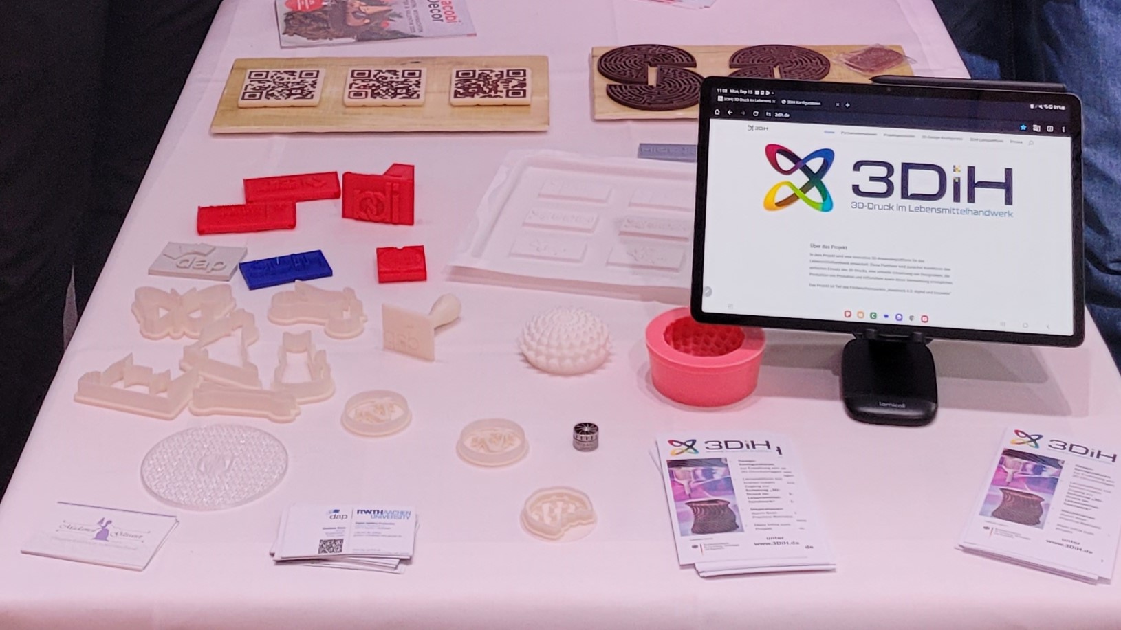 Für das Projekt „3D-Druck im Lebensmittelhandwerk“ (3DiH) war die Teilnahme als Aussteller ein Highlight in der Projektgeschichte. Das BMFTR-geförderte Projekt ist Teil des Förderschwerpunkts „Handwerk 4.0: digital und innovativ“ und veranschaulicht eindrucksvoll, wie 3D-Fertigungsprozesse in der Patisserie und Confiserie neue kreative und wirtschaftliche Möglichkeiten eröffnen – von filigranen, dreidimensionalen Schokoladenskulpturen bis hin zu 3D-gedruckten individualisierten Pralinenformen. In Zusammenarbeit mit Forschungseinrichtungen, Handwerkskammer und Konditoren zeigt das Projekt auf, wie die Integration von 3D-Druck-Technologien nicht nur gestalterische Freiheiten schafft, sondern auch neue Geschäftsmodelle denkbar macht.